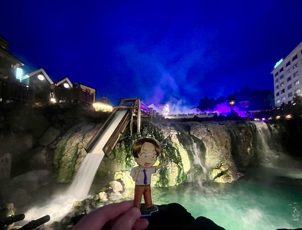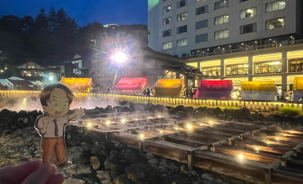 ホテルのプールで泳いで夜ご飯(夜ご飯の写真も撮ったけどあまりにも見栄えがアレだったのでお蔵入りです爆)を食べた後はライトアップを見に再び湯畑へ!!