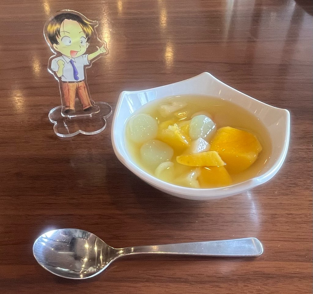 デザートのこんにゃく入りフルーツポンチが去年食べた時おいしくてまた食べれるのが密かに楽しみだった🤭