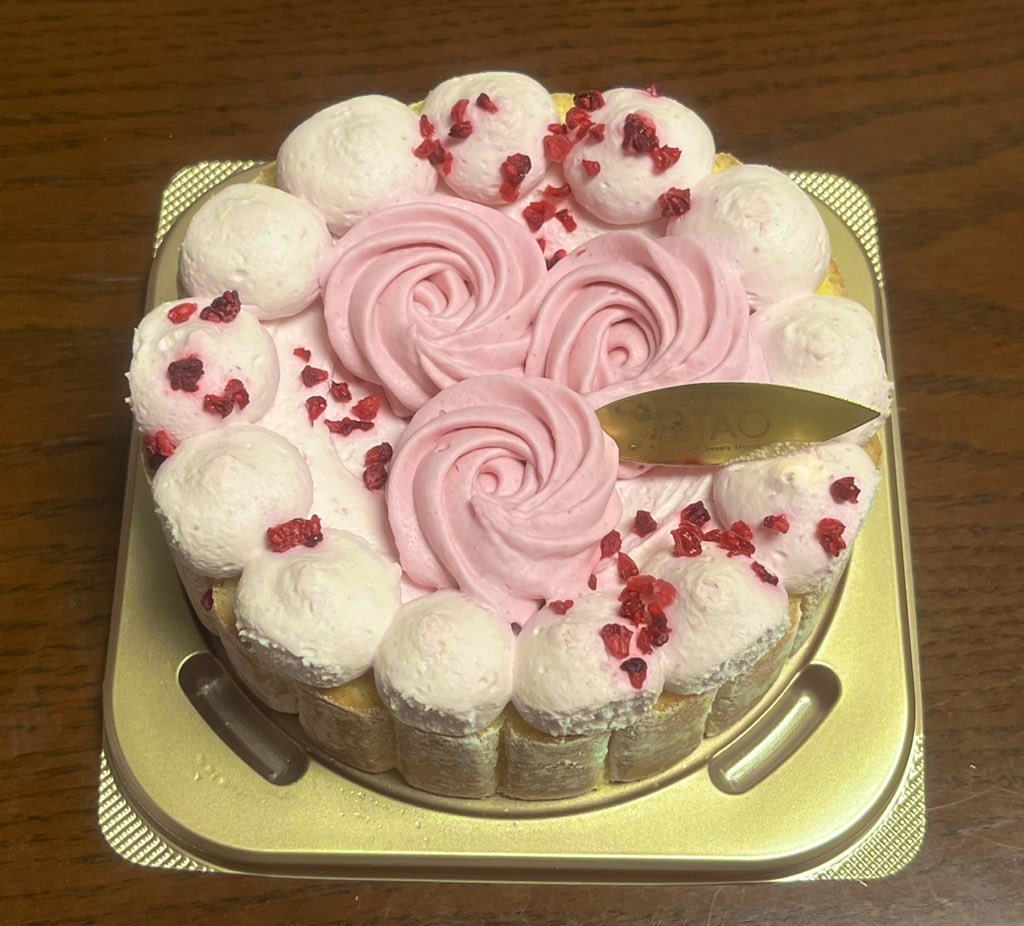 誕生日ケーキはラズベリーのかわいいケーキでした!甘酸っぱくておいしかった!